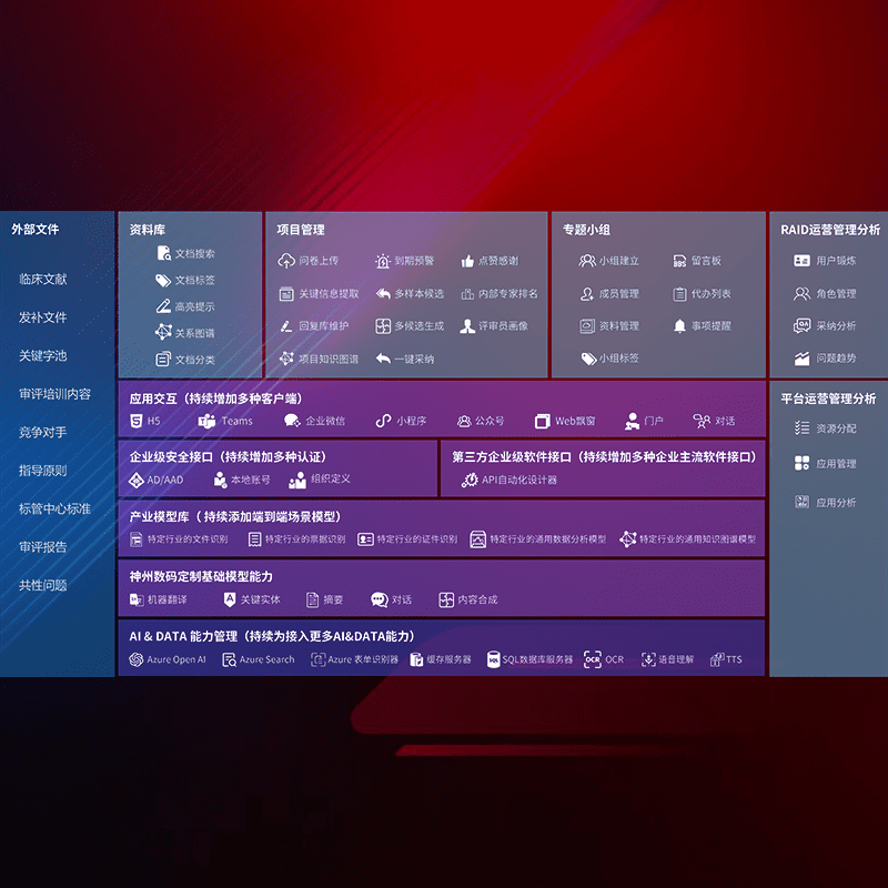 医疗器械产品上市前,,,要熟悉严格与繁复评审标准,,,,整理分析监管机构指导文件中的海量信息。。。企业急需一个智能化解决方案,,,,提升知识管理效率,,,,提高评审通过率,,,以提升其市场竞争力。。。。